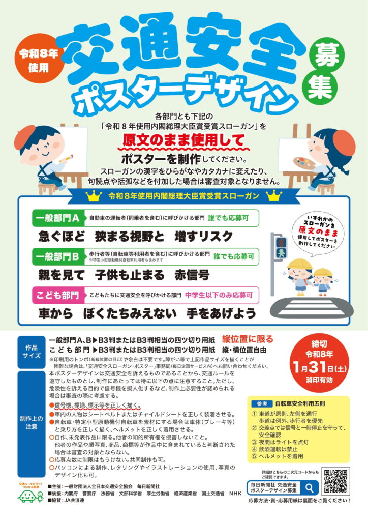 令和8年度使用 交通安全ポスターデザインの募集のお知らせです。