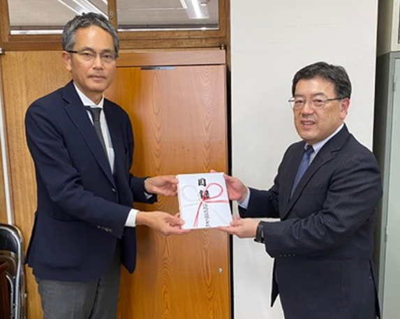 令和8年1月に、信越放送株式会社様より、当交通安全協会が実施する交通事故防止啓発活動の一助として、夜間交通事故防止用反射材購入費20万円の寄付金を贈呈いただきました。