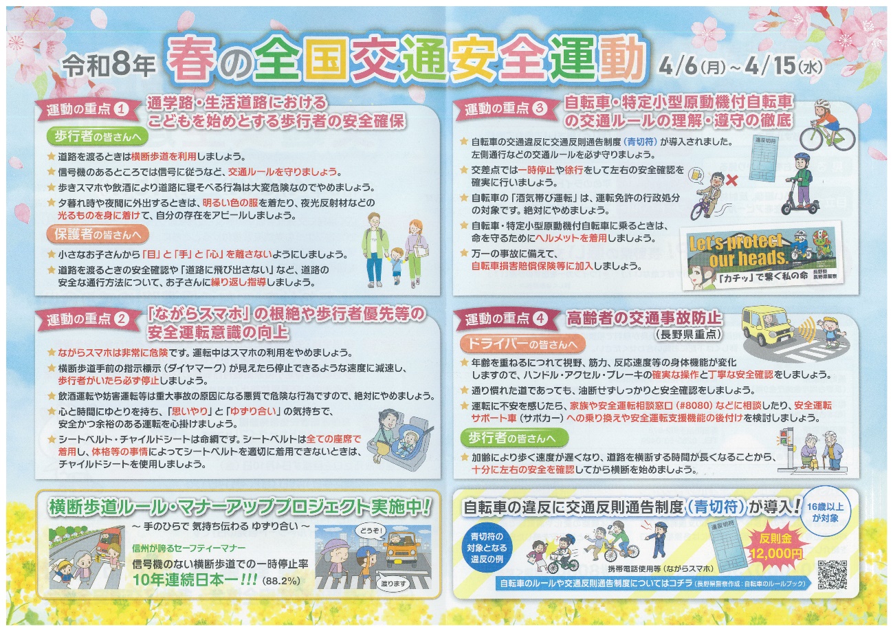 4月6日(月)から4月15日(水)まで、「春の全国交通安全運動」を実施します。