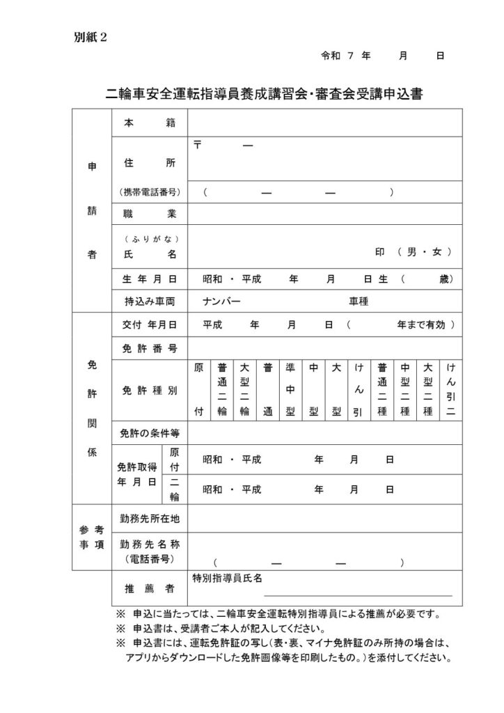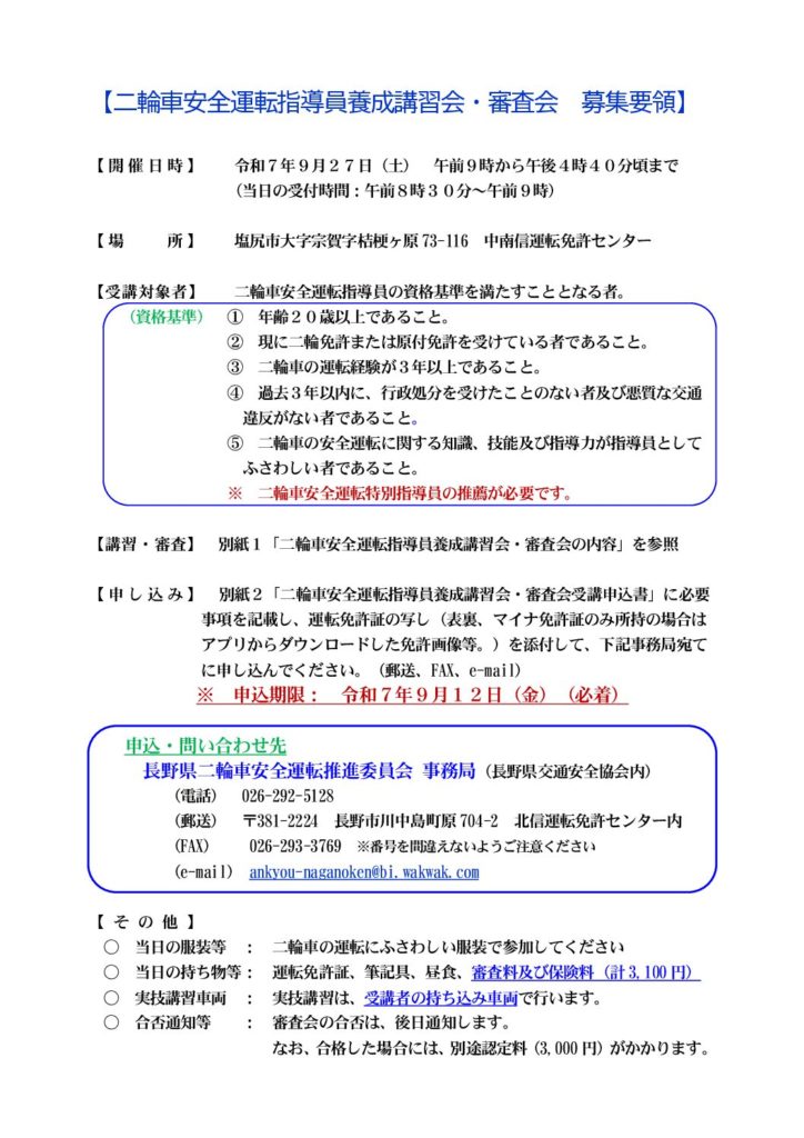 <R7年度は終了しました   二輪車安全運転指導員養成講習会・審査会>